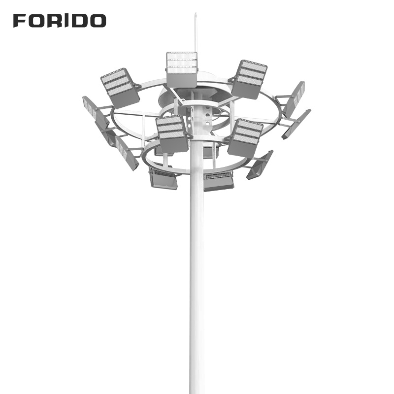 The lamp post is circular, with a wide illumination range and uniform light distribution, reducing light spot overlap, and featuring anti-glare design, suitable for sports venues, squares, etc., providing a comfortable lighting environment.