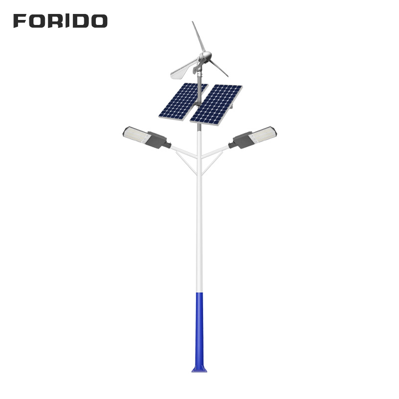 1. Energy complementation, stable power supply: The dual-arm solar-powered and wind-powered street lights combine wind energy and solar energy to achieve 24-hour power generation. In cloudy or windless days, they automatically switch to the energy mode to ensure uninterrupted lighting and strong stability.